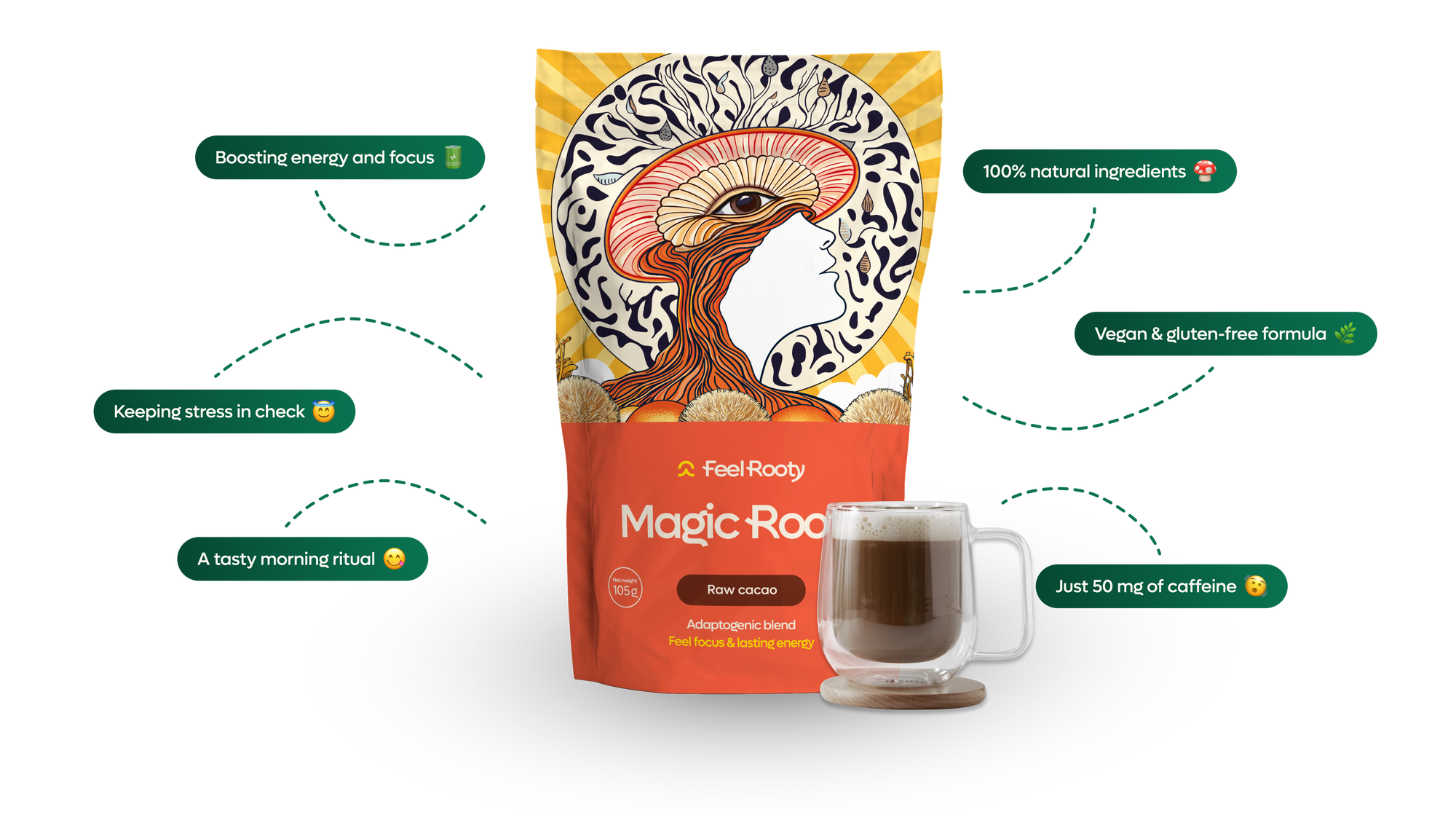 MagicRooty is now available in a handy travel pack (10 sachets per box) – a smaller, on-the-go version perfect for traveling. MagicRooty is a delicious natural drink, a coffee alternative and brain-boosting supplement in one. It’s designed to lift your energy, sharpen your focus, and support your brain — without crashes or jitters.